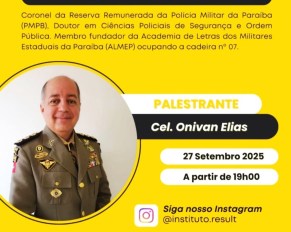 Neste sábado, dia 27, às 19h00, o Coronel Onivan Elias, integrante da Polícia Militar da Paraíba, estará falando sobre Crescimento…